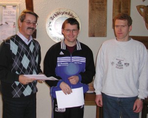 Mario Nock (Mitte) hatte das zielsicherste Händchen. Er holte sich mit 284 Ringe Gold, vor seinen Mannschaftskollegen Uwe Hummel (279 Ringe) und Juri Burbach (274 Ringe). |