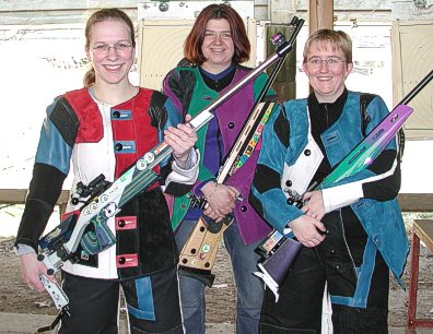 Das Leutesheimer Damen-Team (von links) mit Sabine Lepold (390 Ringe!), Carolin Beiser (373) und Katja Weislogel (375) erzielte mit dem Luftgewehr Mannschaftsgold. In der Einzelwertung belegten diese drei Schützinnen Platz eins bis drei.
