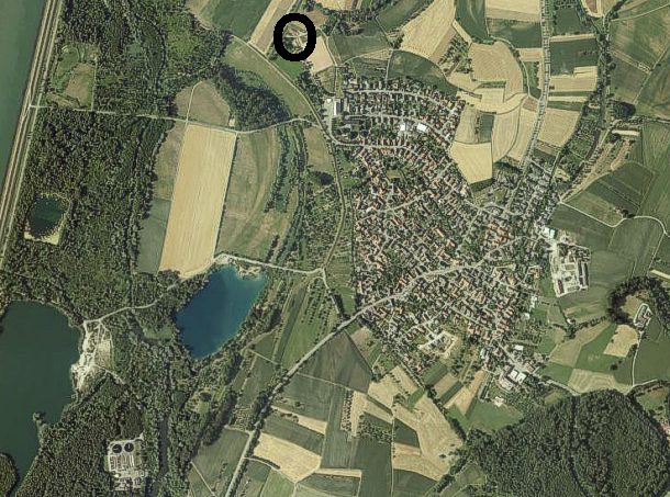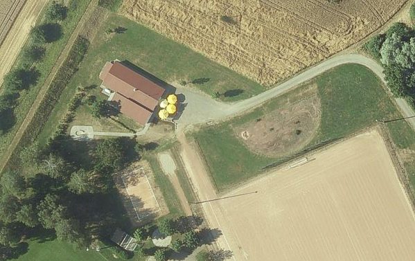 An der Mehrzweckhalle vorbei fahren, dann die Straße gerade aus in das Feld fahren,