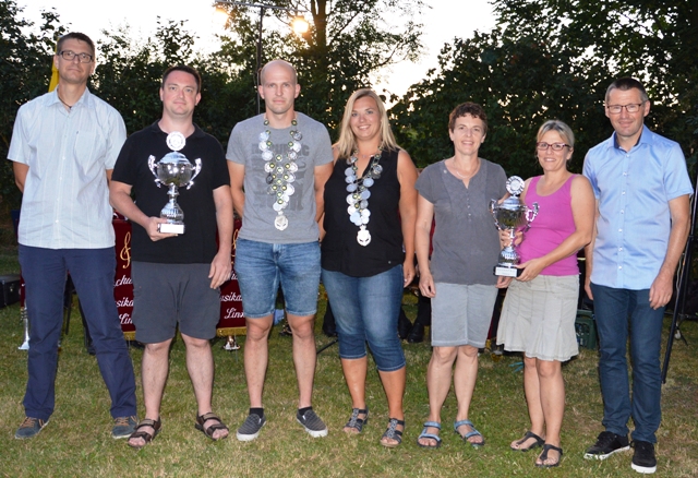 Denny Pieper vom Angelsportverein, das neue Königspaar Jörg Hummel